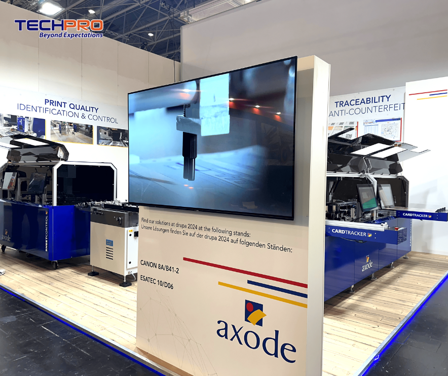 Tại triển lãm, AXODE mang đến các giải pháp xử lý dữ liệu biến đổi và kiểm soát chất lượng mới bằng SheetControl và CardTracker. Theo dõi, giám sát và lập kế hoạch sản xuất với SAFE, chống giả mạo bằng nhãn ba chiều độc đáo. Đối tác AXODE đánh giá cao những đóng góp quan trọng của TECHPRO trong những năm qua. Để tri ân, đại diện hãng đã trao tặng chứng nhận, vinh danh công ty là ”Nhà phân phối hàng đầu của Axode tại khu vực Châu Á”
