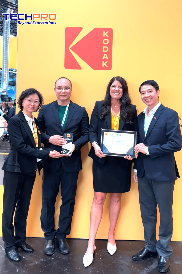 Trong buổi làm việc, hai đối tác KODAK và XEIKON đã nồng nhiệt chào đón đại diện TECHPRO, ghi nhận những đóng góp quan trọng của công ty trong việc phát triển thị trường Việt Nam. Để tri ân, đại diện 2 hãng đã trao tặng kỷ niệm chương, vinh danh TECHPRO là Nhà phân phối sản phẩm máy in kỹ thuật số Kodak hàng đầu khu vực Châu Á và Nhà phân phối chiến lược, sáng tạo của Xeikon tại Việt Nam.