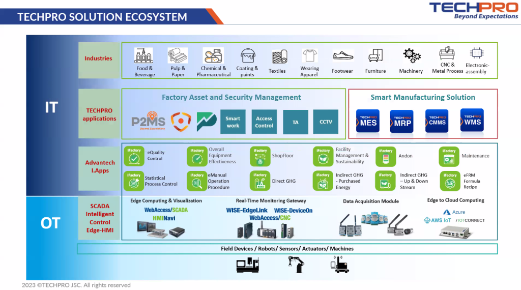 Với chủ đề ‘’TECHPRO’s journey from IT Distributor to solution and service provider”, đại diện công ty TECHPRO – diễn giả Hoàng Thị Thanh Thủy nhấn mạnh về hành trình hơn 20 năm hợp tác, phát triển TECHPRO – ADVANTECH từ nhà phân phối IT đơn thuần đến đối tác phát triển giải pháp. Đội ngũ giải pháp, phần mềm của TECHPRO được thành lập nhằm cung cấp dịch vụ bổ sung và giá trị gia tăng cho từng phân khúc thị trường, đội ngũ R&D với chuyên môn cao, hiểu biết chuyên sâu về lĩnh vực đã nghiên cứu và phát triển phần mềm được thiết kế riêng để tối ưu hóa sản xuất.