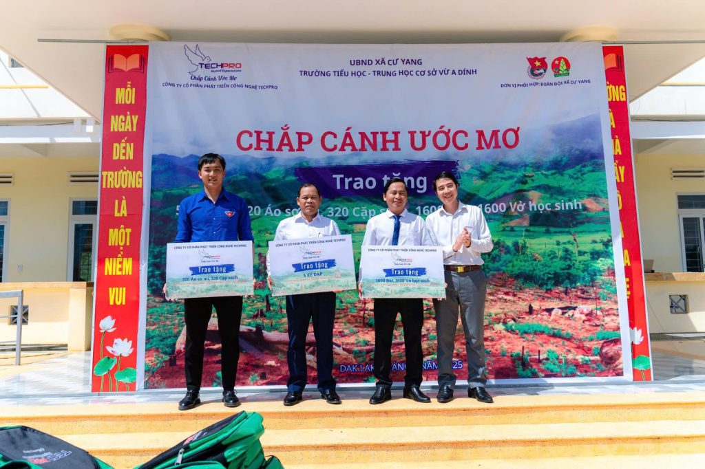 Ngày khai giảng năm học mới 2025 – 2026 tại Trường Tiểu học – THCS Vừ A Dính (xã Cư Bông, Ea Kar, Đắk Lắk) trở nên đặc biệt hơn với sự đồng hành của TECHPRO. Vượt gần 500 km, Ban lãnh đạo và các anh chị em công ty TECHPRO đã trao tặng ba lô, đồng phục, sách vở và dụng cụ học tập đến tận tay các em nhỏ.